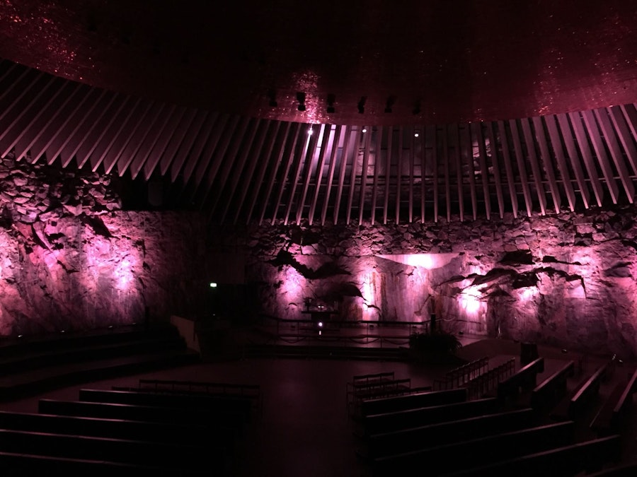 Den är ett verk av de finska arkitekterna Timo och Tuomo Suomalainen, som är kända för att skapa så ovanliga och slående byggnader. Detta är deras mest berömda skapelse. Kliv in och förundras över klippformationerna och takkonstruktionen.
