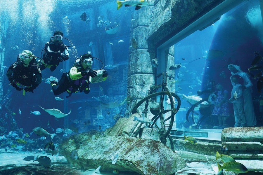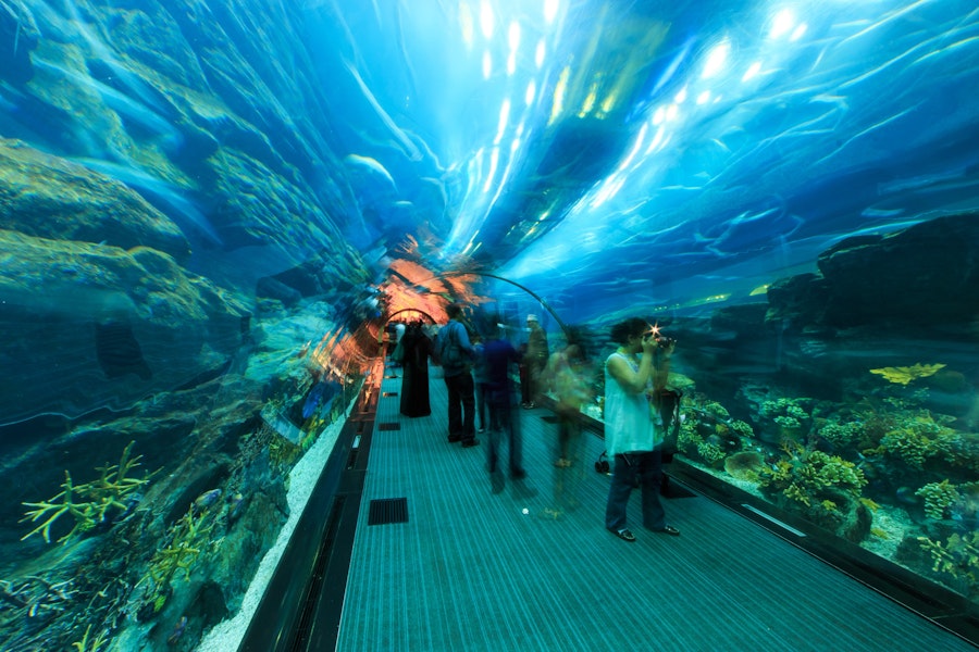 Du kan gå genom en otrolig 48 meter lång undervattenstunnel , omgiven av vatten och färgglada fiskar som simmar runt omkring dig. Från hajar till mantastrålar och tropiska fiskar får du möjlighet att beundra en mängd olika havsdjur.