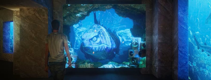 Du kommer att utforska 14 omgjorda temakammare, upplysta av 1 900 LED-paneler, filmiska ljudlandskap och visuella effekter som förvandlar varje rum till ett nytt kapitel i legenden om Lost World. Mer än 65 000 marina djur lever här, inklusive 35 exotiska arter i 19 extraordinära livsmiljöer.