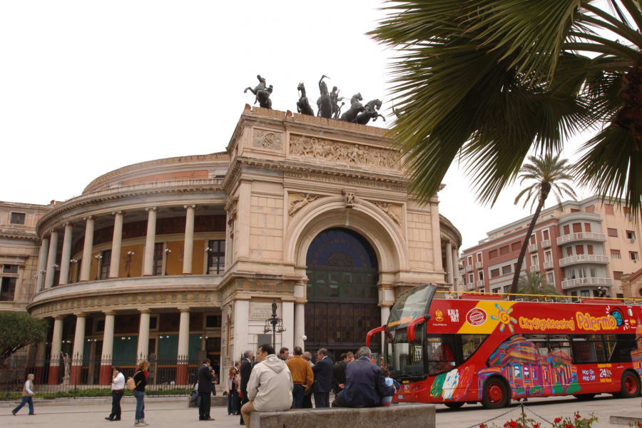 Upptäck den sicilianska huvudstaden med denna sightseeingbuss i Palermo, en biljett som är giltig i 24 timmar och som låter dig hoppa av och på fritt för att utforska staden i din egen takt. Tjänsten fungerar i hop-on hop-off-format och inkluderar en flerspråkig audioguide, perfekt för att orientera dig när du utforskar de viktigaste sevärdheterna.