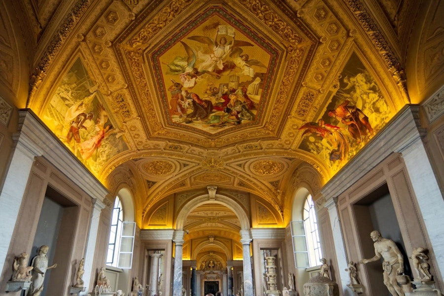Inne i Vatikanmuseerna kommer du att upptäcka en av de viktigaste konstsamlingarna i världen, ackumulerad av påvarna genom århundradena. Du kommer att besöka enastående områden som Pio Clementino-museet, hem till mästerverk som Laocoön och Apollo Belvedere, liksom kartgalleriet, gobelänggalleriet och andra rum fulla av historia och symbolik, alltid med förklaringar från din guide och hörlurar för att inte missa någon detalj.