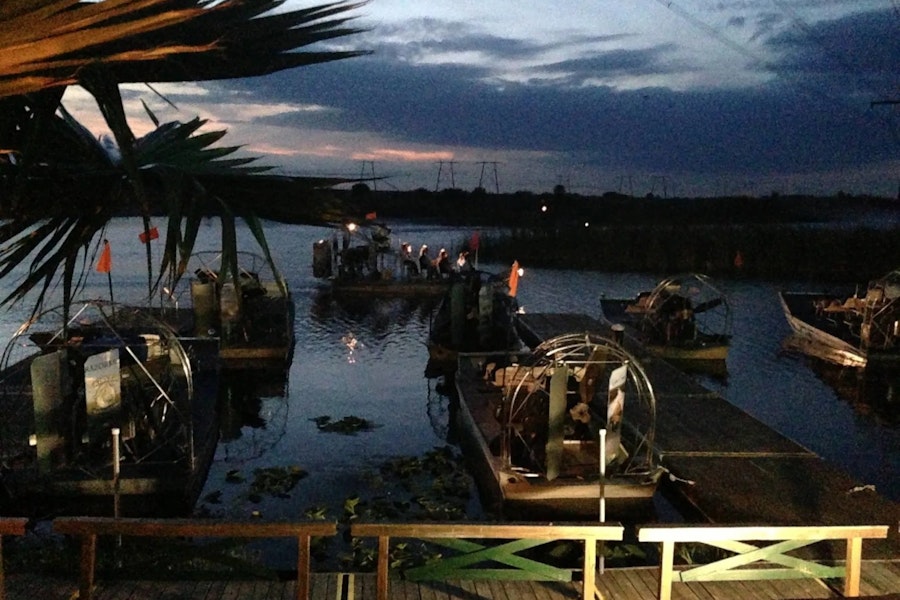 Guidad av en expertkapten lär du dig om legenderna och historien om Seminole-folket och lyssnar på ljudet av vilda djur i mörkret.